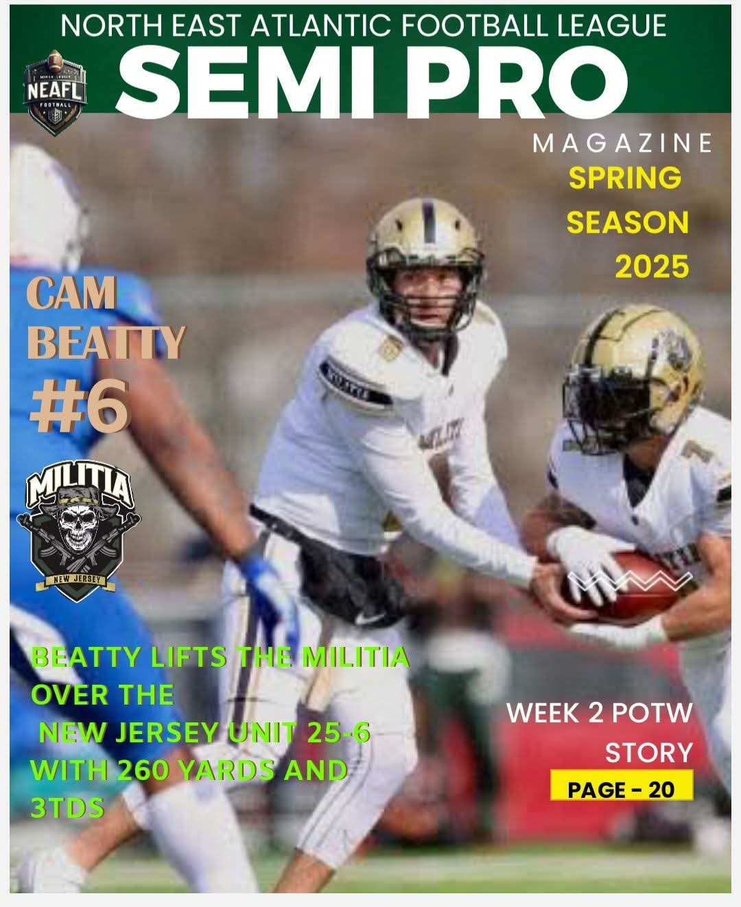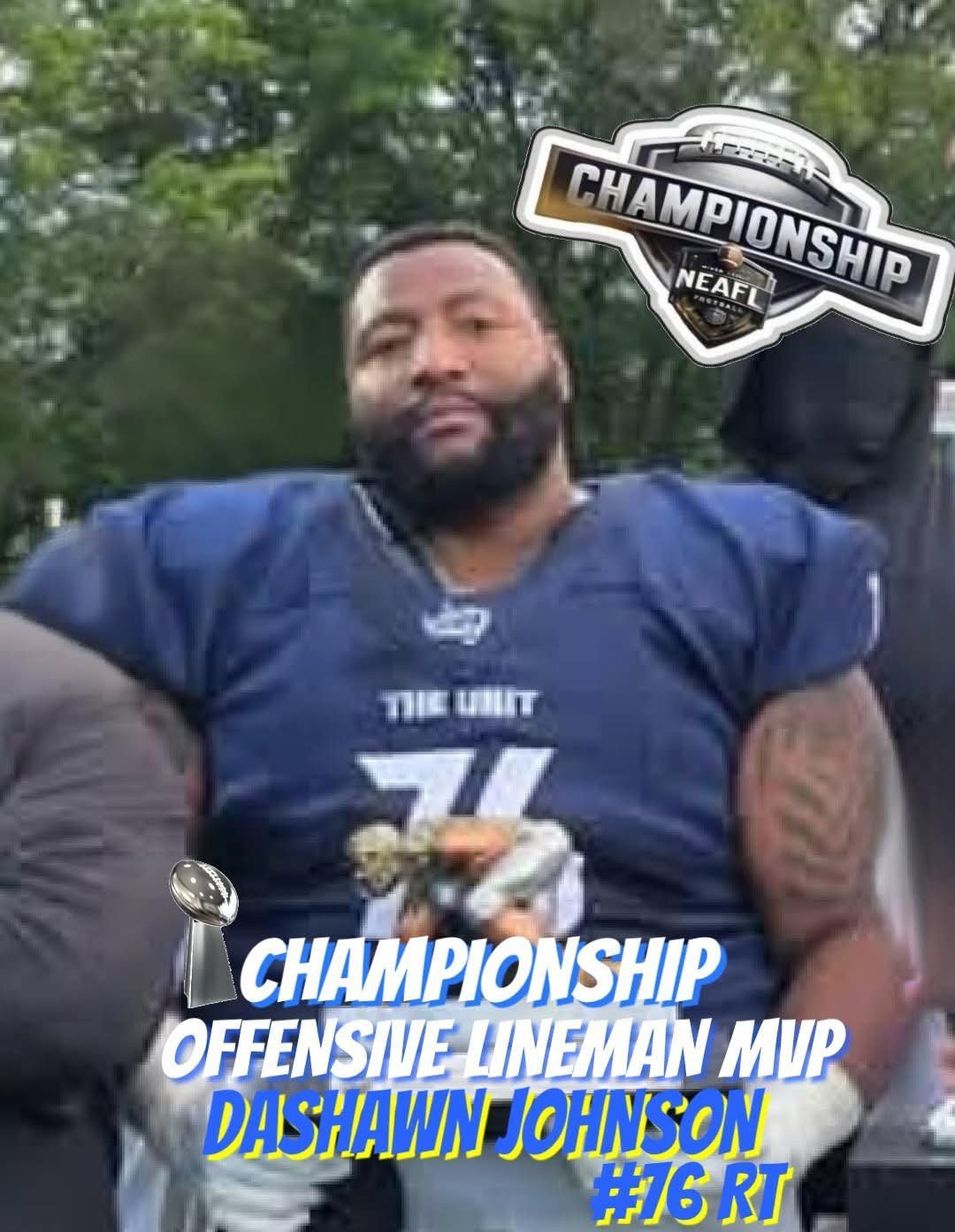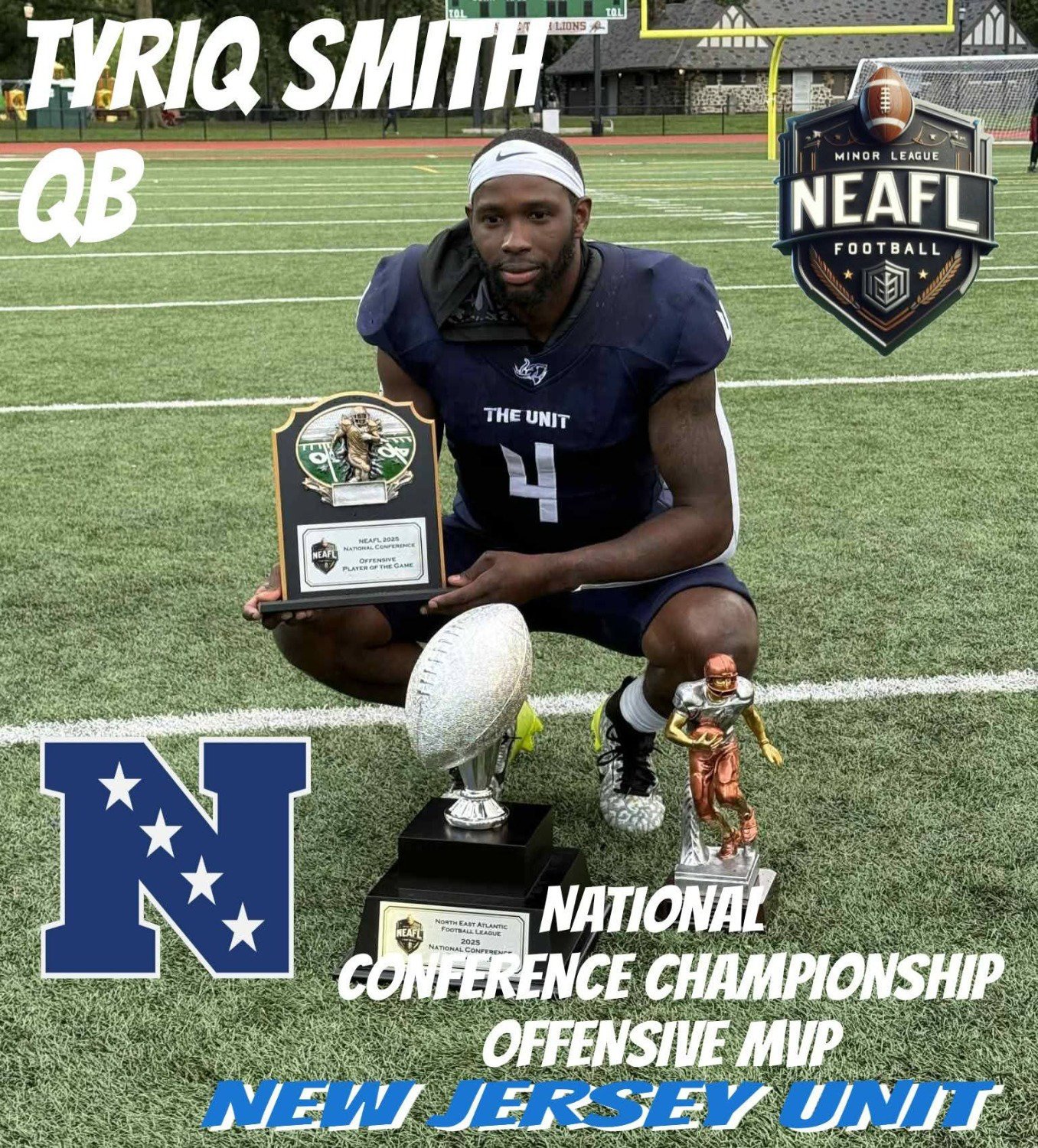 NEAFL 2023 LEAGUE MVP CAM BELL OF THE CUMBERLAND COUNRY AND COMMISSIONER JOHN CIEPLENSKI.